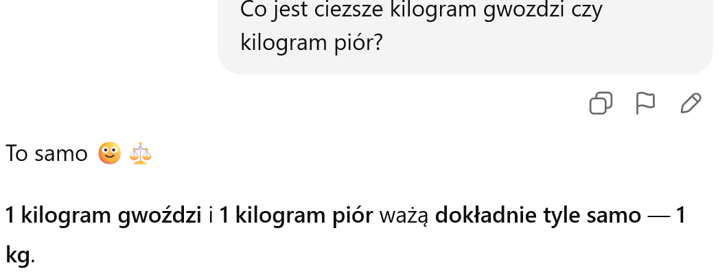 Dlatego zawsze piszę że podstawowe tryby pracy AI, takie które nie myślą kilkadziesiąt sekund, czasami się sprawdzają ale lepiej traktować je jako rozrywkę/ciekawostkę. Nie opierać się na nich w poważniejszych sprawach. Oczywiście AI w żadnym trybie nic nie gwarantuje.