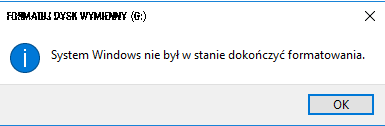 Od ponad godziny męczę się, aby móc korzystać z dysku G. Wyświetla mi się, iż mam sformatować dysk. Jednak gdy chcę to zrobić to wyświetla się komunikat: System Windows nie był w stanie dokończyć formatowania.