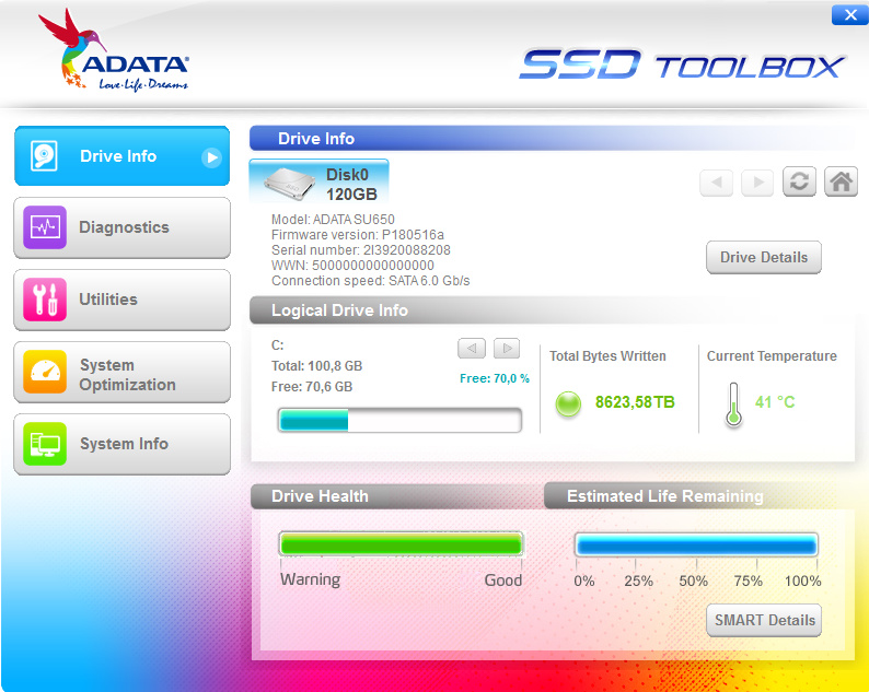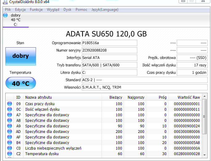 Jak sprawdzić “przebieg” dysku? Znalazłem ale sprzeczne informacje. W cristal disk info mam info, że dysk pracował 1h, a w ADATA SSD ToolBox mam info, że na dysku napisano 8tys. tb. Proszę o pomoc bo dysk kupiłem jako “nowy” w laptopie poleasingowym Adata SU650.