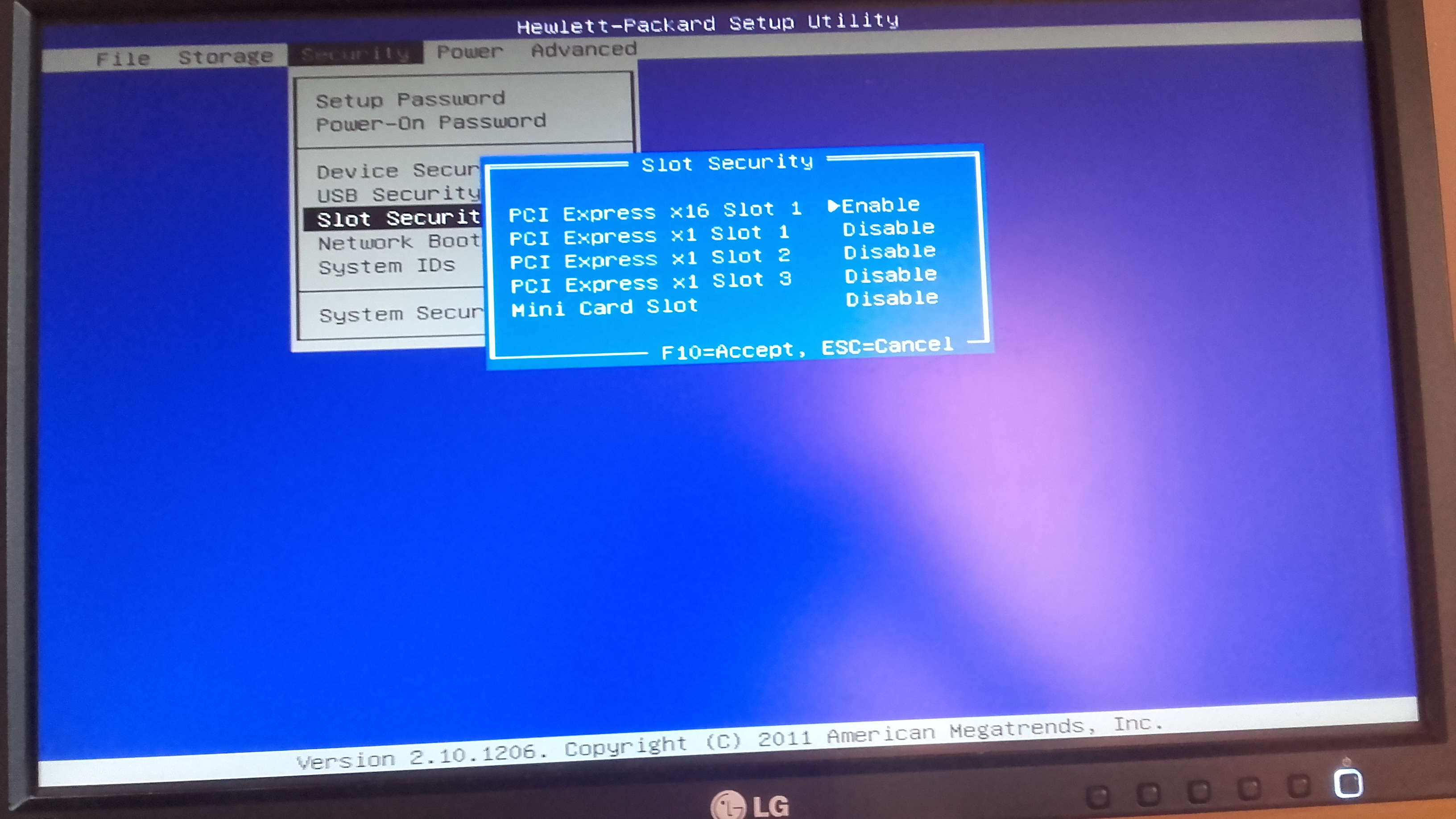 Nie wyłączyłeś “slot security” dla PCI x16, cokolwiek to znaczy…