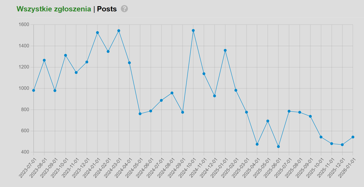 No z tym nie jest najlepiej, to fakt. W styczniu to ponad pół tysiąca, a kiedyś bywało kilka razy więcej. Choć parę lat temu też często nie przekraczało to tysiąca.