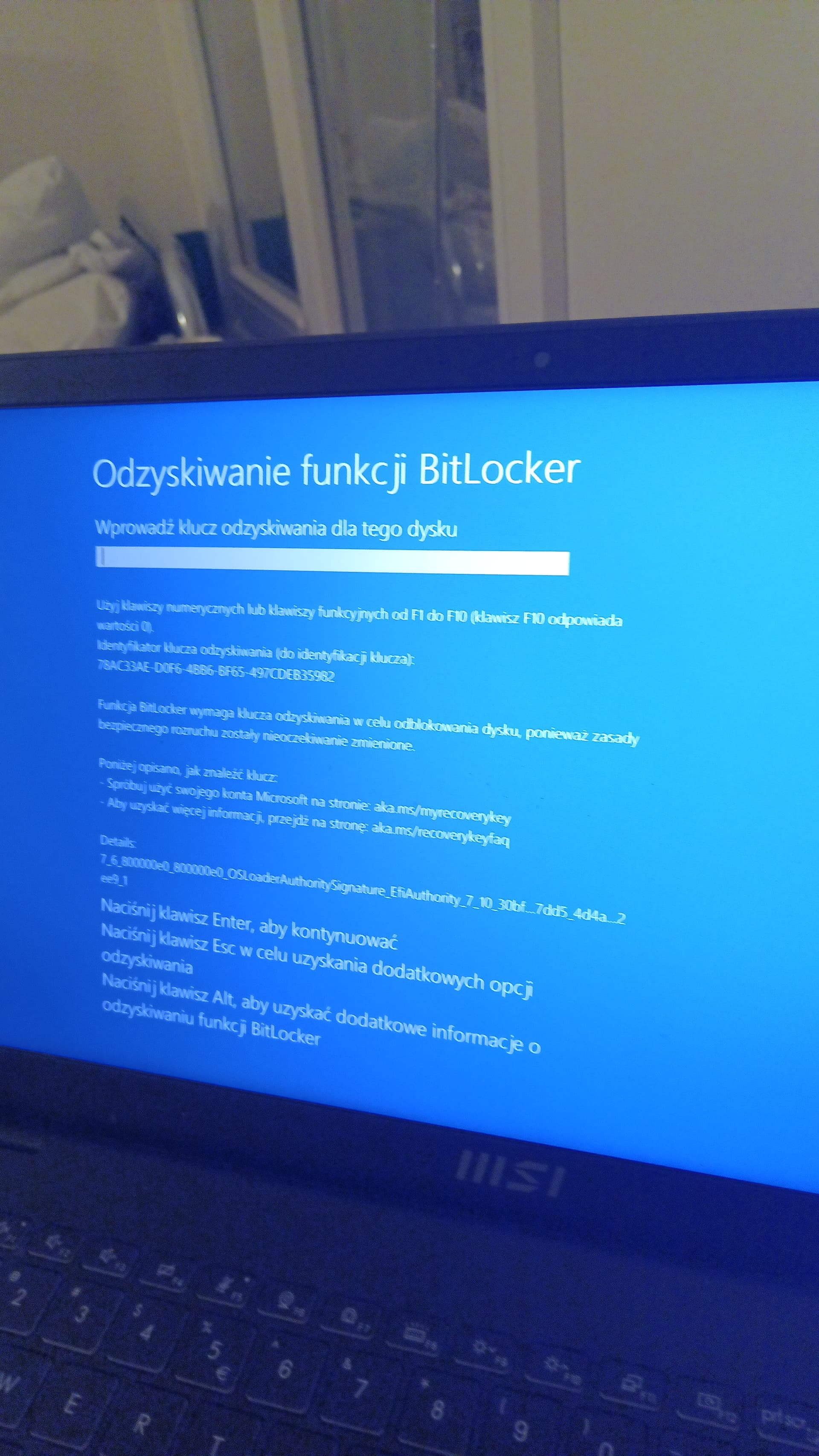 Klucz jest przypisany do konta M$, wystarczy wejść, zwykle mail, lub nr. telefonu i tam można odzyskać klucz, potem wklepać i to w zasadzie tyle. Ewentualnie, jeśli brak istotnych danych, to wywalić partycje, zainstalować od nowa i tyle.