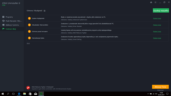 Centrum akcji w programach firmy Iobit pełni role reklamową ,nie przejmuj się tym