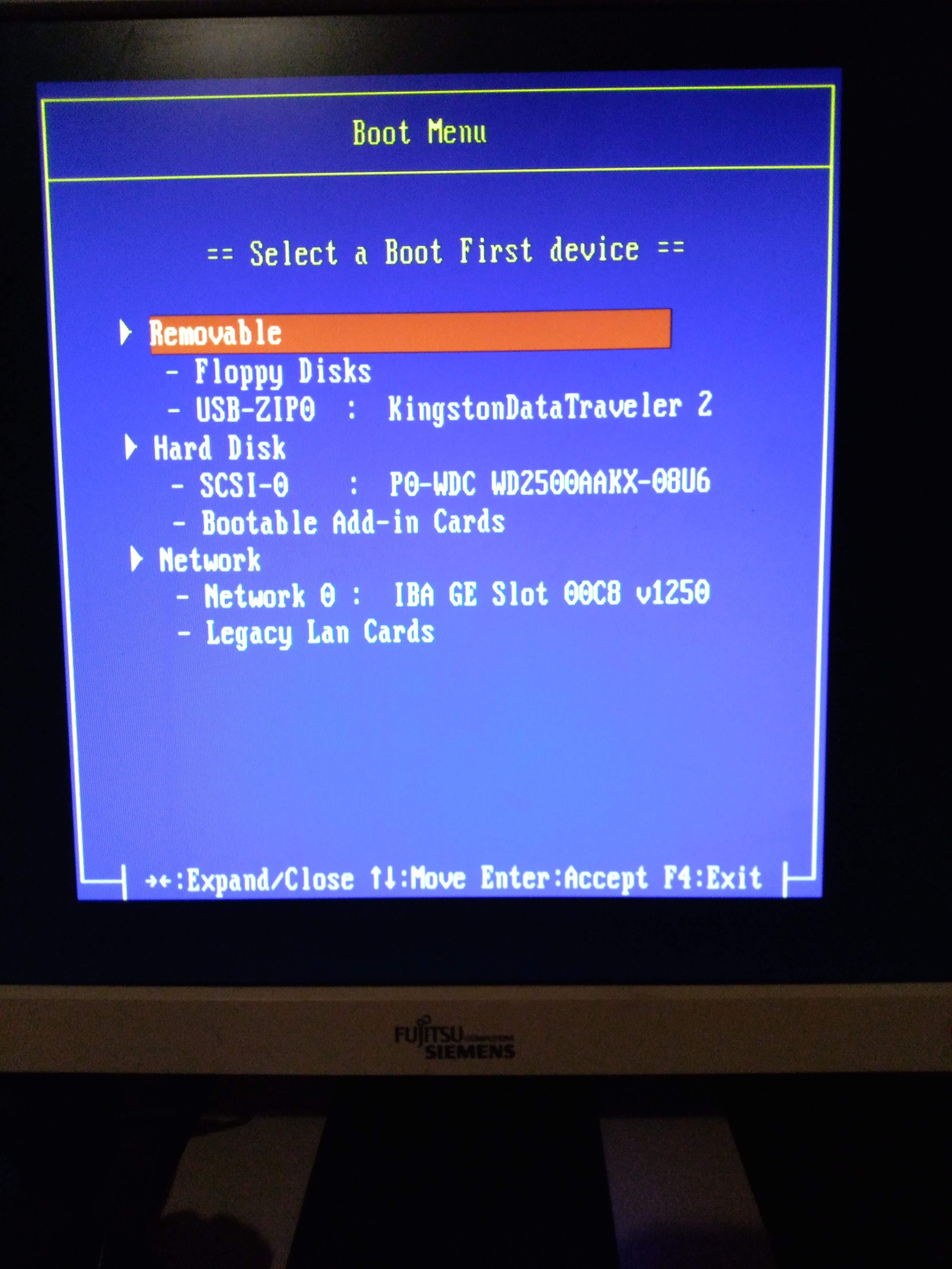 Wybierz strzałkami pozycję USB-ZIP0, podświetl i kliknij Enter. Pendrajw musi być włożony!