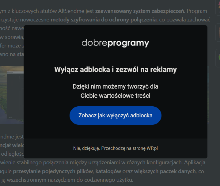 Niby wskoczyła plansza, że reklam nie wolno blokować i mamy wrócić na główną WP do innych artykułów np. plotkarskich.