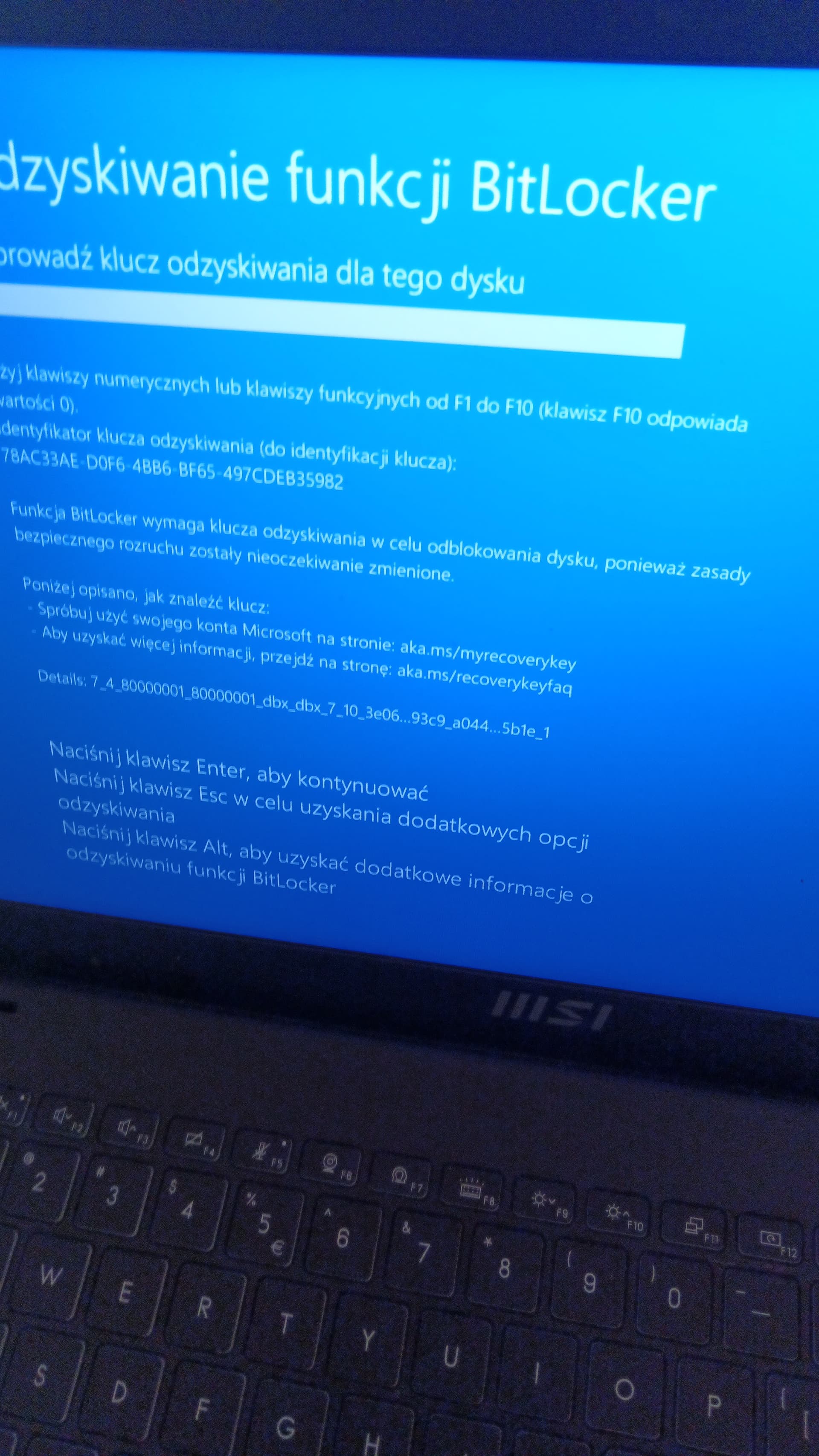 Na zdjęciach widać, że BitLocker używany, tak? Jeśli tak, to teraz musisz go wył.