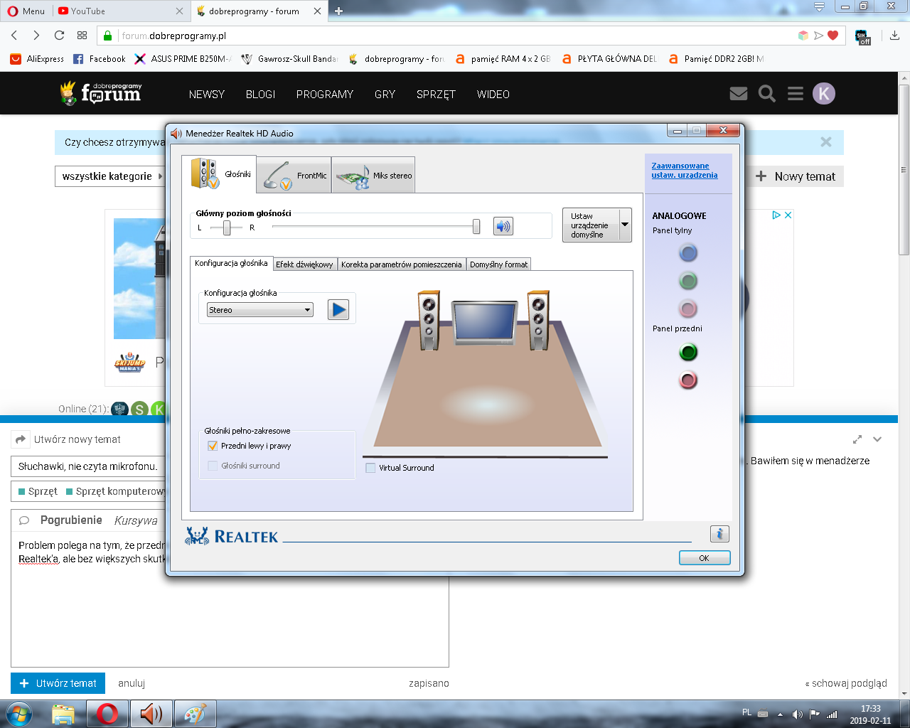 Problem polega na tym, że przedni oraz tylny port audio nie działa. Bawiłem się w menadżerze Realtek’a, ale bez większych skutków.