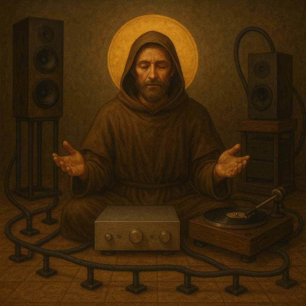 Miałem dobrego kolegę, już nie jest doby, a raczej to ja stałem się tym złym, nie widzieliśmy się z rok, kiedyś zadzwonił, że nie ma netu, jak się okazało robotnicy przy przeróbce poddasza uszkodzili światłowód, nieistotne… Podczas picia kawy zapytał, czy chce zobaczyć jego nowe nabytki audio i wtedy oniemiałem, w sprzęcie audio zamiast fabrycznych kabli i gniazd gniazda IEC, podłączone kablami w oplocie z żelazka, do czarnej metalowej skrzynki, a potem do gniazdka w ścianie, kable głośnikowe podobnie, też w oplocie i leżące na jakiś drewnianych podstawkach, jak mu powiedziałem, że to wszystko to ściema, to się obraził, strzelił focha, i powiedział, że się nie znam, i że jak dopiję kawę, to nie będę mile widziany u niego w domu, kawę dopiłem z jego żoną.