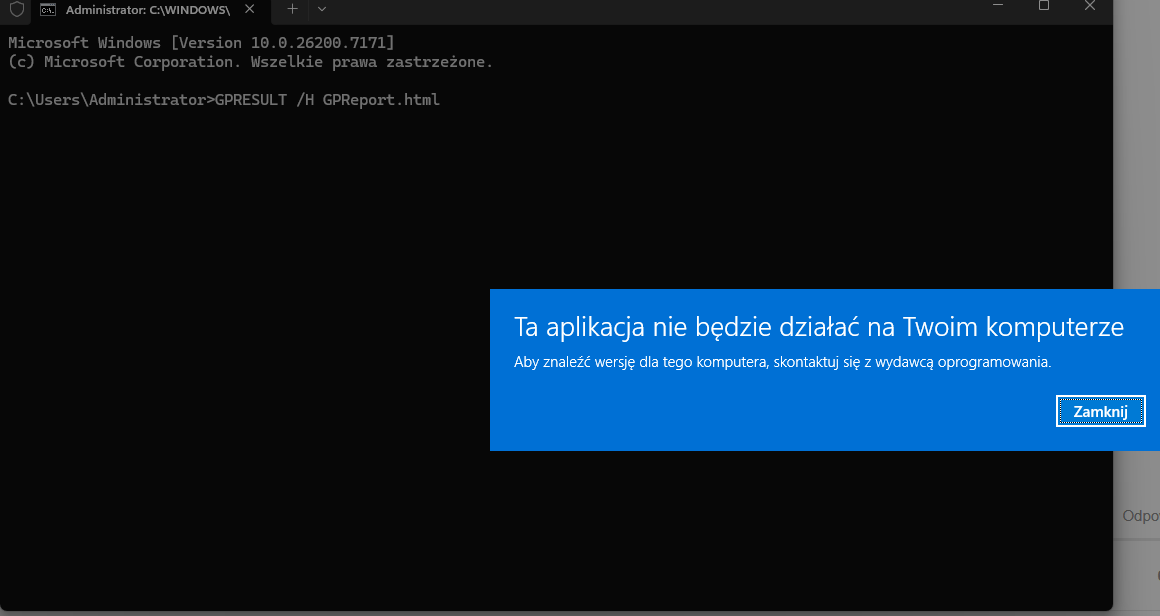 On jest obciążony wieloma wyjątkami. - Może gpresult nie działa już w niedomenowych komputerach? To byłoby dziwne