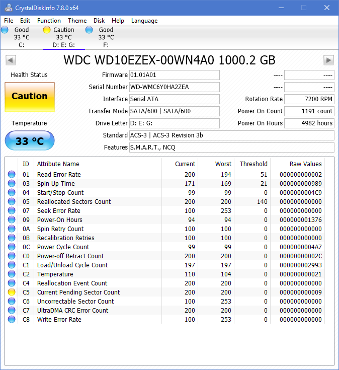 Mam problem z dyskiem WD Caviar Blue. Smart pokazuje parametr C5 Current Pending Sector Count = 9