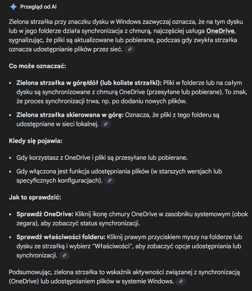 Zielona strzałka skierowana w prawo (na białym tle) nakładana na ikonę dysku w Eksploratorze Windows oznacza włączone udostępnianie tego dysku w sieci. Innymi słowy, dysk został skonfigurowany jako udział sieciowy … i tu 3 akapity wyjaśnień jak to się konfigurujeCo nie oznacza ten symbol?