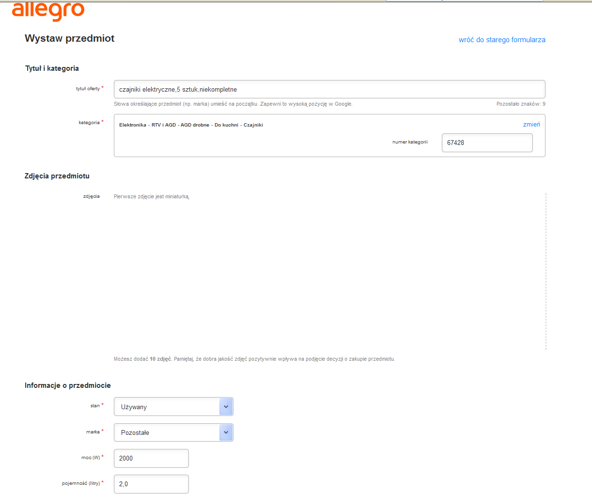 No proszę,było tak fajnie przez 2 lata,wystawiało się bez problemów,no to pora coś spieprzyć w serwisie. I tak oto szanowni webmasterzy z allegro sparaliżowali opcję dodawania zdjęć.Oto co się pokazuje w rubryce “zdjęcia przedmiotu” .Dziękuje wam bardzo za poprawienie formularza sprzedaży,jesteście prawdziwymi fachowcami,chylę czoła przed waszym profesjonalizmem i doświadczeniem!